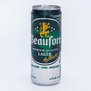 Bière Beaufort Lager 33cl, bière blonde rafraîchissante très populaire en Afrique de l’Ouest.
